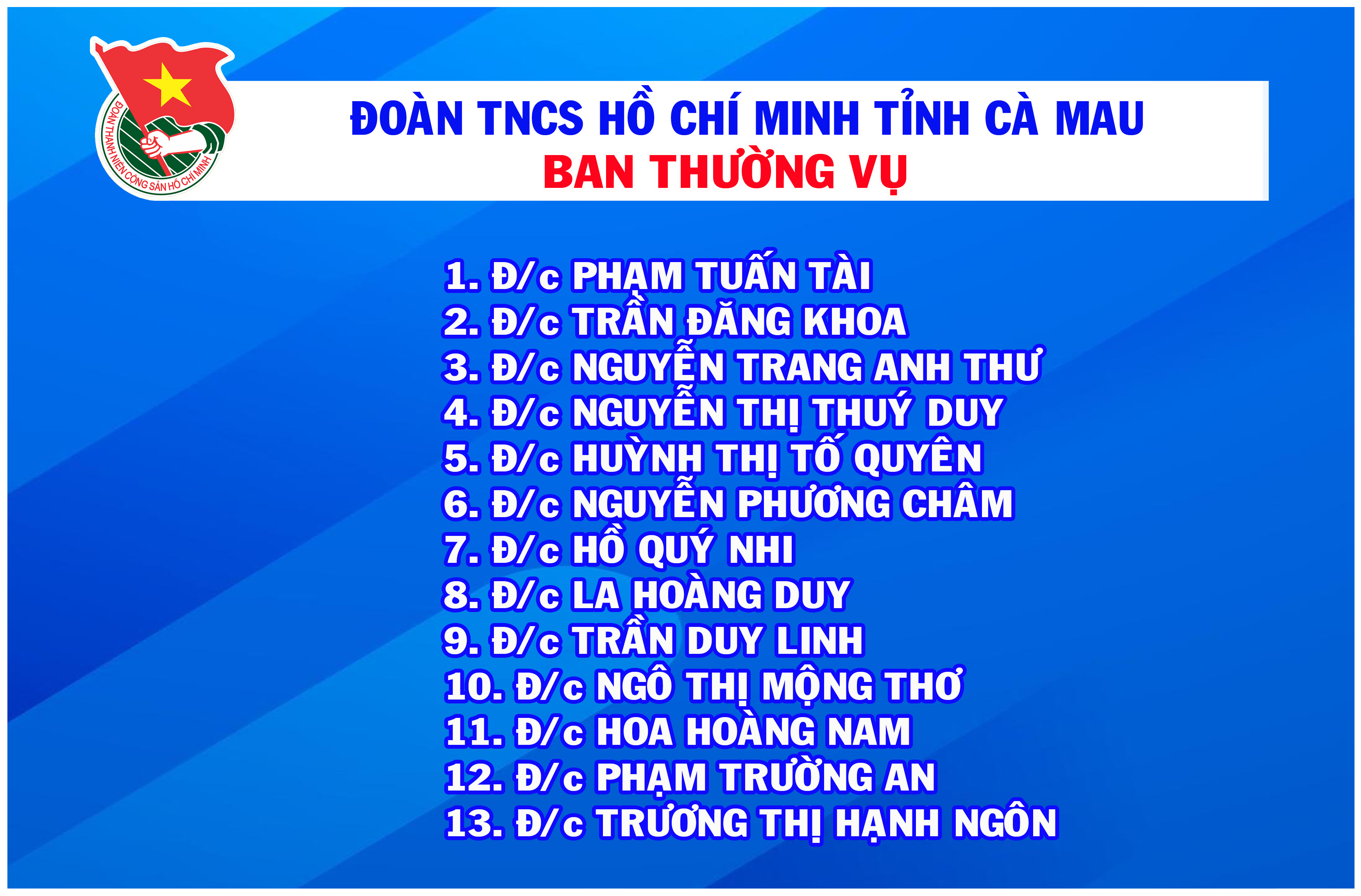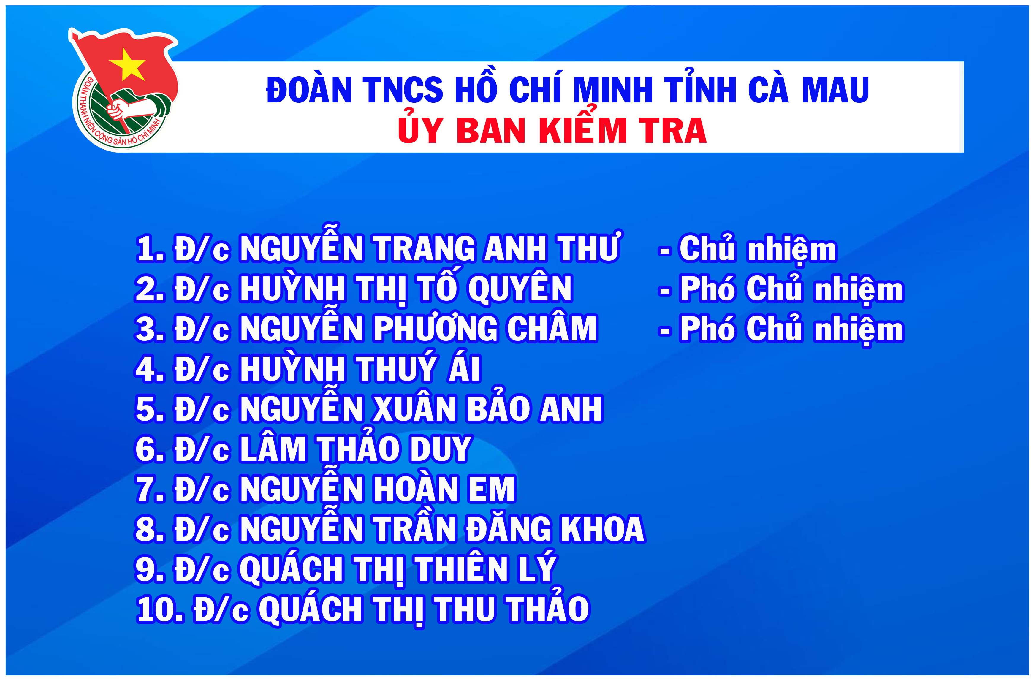 Bí thư, Phó Bí thư, Ban Thường vụ, Ban Chấp hành và Ủy ban Kiểm tra lâm thời Tỉnh đoàn Cà Mau - td
